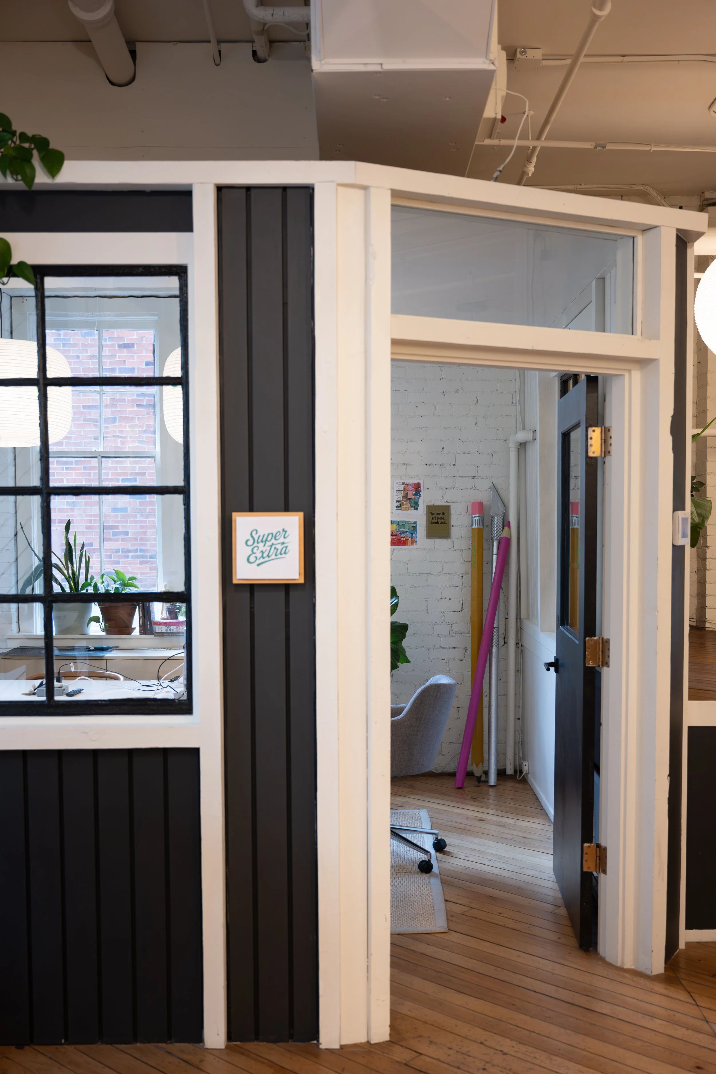 Interior of Super Extra Creative, where bold, feminist-fueled brands for women-led businesses are launched. Explore our services, strategy, and design work.